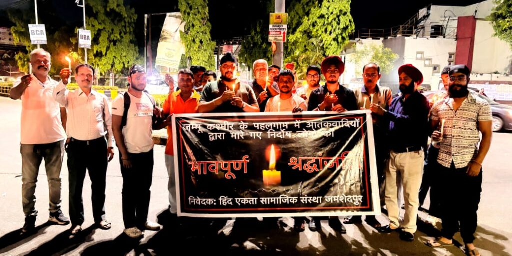 आतंकवाद के सफाए की मांग को लेकर लोग आग बबूला है,हिंद एकता सामाजिक संस्था के सदस्यों ने रोष प्रकट करते हुवे कदमा में एक कैंडल मार्च निकाला,यह मार्च मलकीत होटल से कदमा गोलचक्कर में समाप्त हुआ