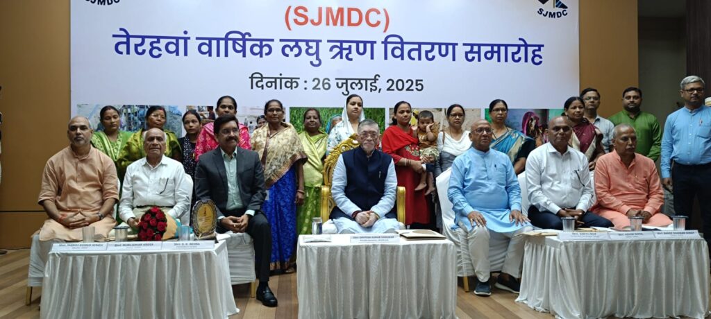 भारतीय विपणन विकास केन्द्र (सी.बी.एम.डी.) एवं स्वदेशी जागरण मंच से संबद्ध ‘‘स्वावलंबी झारखण्ड माइक्रोवेलफेयर डेवलपमेंट सेंटर (एस.जे.एम.डी.सी.)’’ के द्वारा शनिवार दिनांक 26 जुलाई, 2025 को माईकल जॉन प्रेक्षागृह में 13वां वार्षिक लघुऋण वितरण समारोह में झारखण्ड के राज्यपाल महामहिम श्री संतोष गंगवार जी के मुख्य आतिथ्य में संपन्न हुआ। समारोह के दौरान मुख्य अतिथि महामहिम संतोष गंगवार, विशिष्ट अतिथि के रूप में जमशेदपुर पश्चिम के विधायक माननीय सरयू राय, उद्यमी सह समाजसेवी एस.के. बेहरा के हाथों 75 महिलाओं के बीच 25 लाख के लघु ऋण वितरित किया गया।