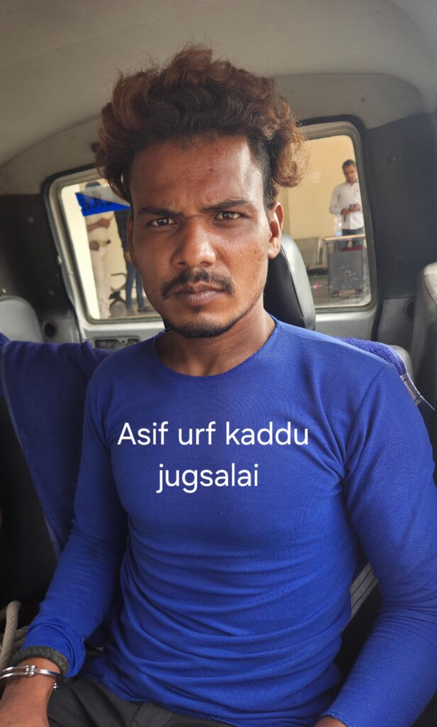 जिसके संबध में जुगसलाई थाना कांड सं0-82/25, दिनांक-17.07.2025, धारा-331(4)/305 बी0एन0एस0-23 के अंतर्गत कांड दर्ज किया गया था। जिसके बाद पुलिस उपाधीक्षक विधि-व्यवस्था, जमशेदपुर के निर्देशानुसार, थाना प्रभारी जुगसलाई थाना के नेतृत्व में जुगसलाई पुलिस पदाधिकारी एंव सशस्त्र बल के द्वारा कारवाई करते हुए गुप्त सूचना के आधार पर इस्लाम नगर स्थित अभियुक्त मो० आसिफ उर्फ कद्दु के घर में रखे अलमीरा से चोरी के सामानों के साथ बरामद करते हुए गिरफ्तार कर न्यायीक हिरासत में भेजा जा रहा हैं।जप्त सामानों की विवरणीः-01. पितल का लोटा02. पितल का स्टैंड वाला त्रिशुलगिरफ्तार अभियुक्त का नामः-01. मो० आसिफ उर्फ़ कहू उम्र करीब 24 वर्ष पिता स्व० मो० अनवर हुसैन पता – महतोपाड़ा, इस्लाम नगर, जुगसलाई, थाना – जुगसलाई जिला पूर्वी सिंहभूम वर्तमान पता मो० इरफ़ान के यहाँ रेंट पर, इस्लाम नगर, थाना – जुगसलाई जिला पूर्वी सिंहभूम, जमशेदपुर।अपराधिक इतिहास1. जुगसलाई थाना कांड संख्या 85/22 दिनांक 25/07/22 धारा 379/411 भा० द० वि० ।2. जुगसलाई थाना कांड संख्या 142/21 दिनांक 30/10/21 धारा 461/379/411 भा० द० वि०।छापेमारी दल का नामः-01. वैजनाथ कुमार, पु०नि० सह थाना प्रभारी, जुगसलाई थाना।02. पु०अ०नि० आलोक कुमार जुगसलाई थाना।03.पु०अ०नि० सुमित लकड़ा, जुगसलाई थाना।04. स०अ०नि० दुधनाथ राम, जुगसलाई थाना।05. आ0-1265 कृष्ण कुमार रजक, जुगसलाई थाना।
