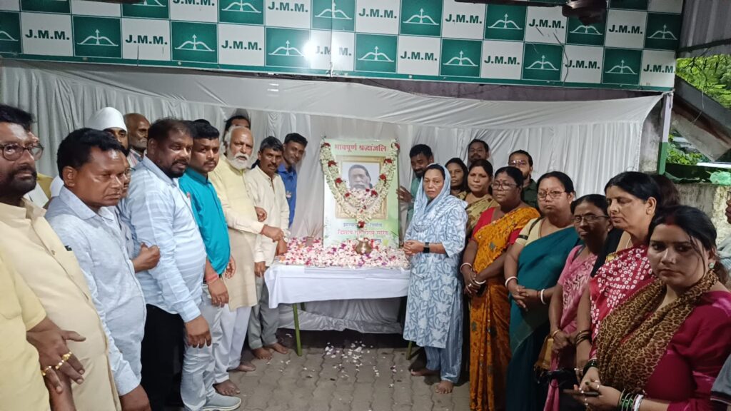 जहां पार्टी के सभी नेता एवं कार्यकर्ताओं ने गुरुजी शिबू सोरेन को श्रद्धांजलि देकर उनकी आत्मा की शांति के लिए 2 मिनट का मोन रखा