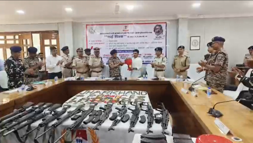 लातेहार जिला मे JJMP संगठन 9 नक्सलियों ने सी आर पी एफ आई जी साकेत सिंह, आई जी अभियान माईकल राज, पलामू के जोनल आई जी सुनिल भास्कर व लातेहार पुलिस अधीक्षक कुमार गौरव के समक्ष हथियार एवं भारी मात्र में एके 47भी बरामद किया गया जिसमें जे जे एम के नौ कमांडर ने आत्म समर्पण नीति के तहत हथियार डाला जिसमे