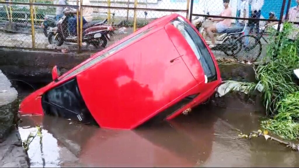 वाहन मालिक ने बताया कि वे गाड़ी पार्किंग में खड़ा कर अपने निजी काम से पास ही गए थे। लौटने पर उन्होंने देखा कि तेज जल प्रवाह के कारण उनकी गाड़ी बहकर नाले में डूब गई है।