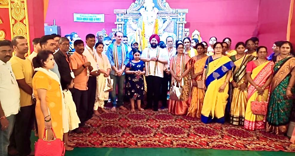 जमशेदपुर : शहर की सुप्रसिद्ध गणेश पूजा कमेटी श्री बाला गणपति विलास के तत्वावधान में आयोजित भव्य एवं आकर्षक गणेश पूजा पंडाल में संध्या आरती के दौरान झारखंड भाजपा के प्रदेश प्रवक्ता अमरप्रीत सिंह काले मुख्य अतिथि के रूप में शामिल हुए। उन्होंने विधिवत पूजा-अर्चना कर विघ्नहर्ता भगवान गणेश से राज्यवासियों के सुख, शांति और समृद्धि की कामना की।