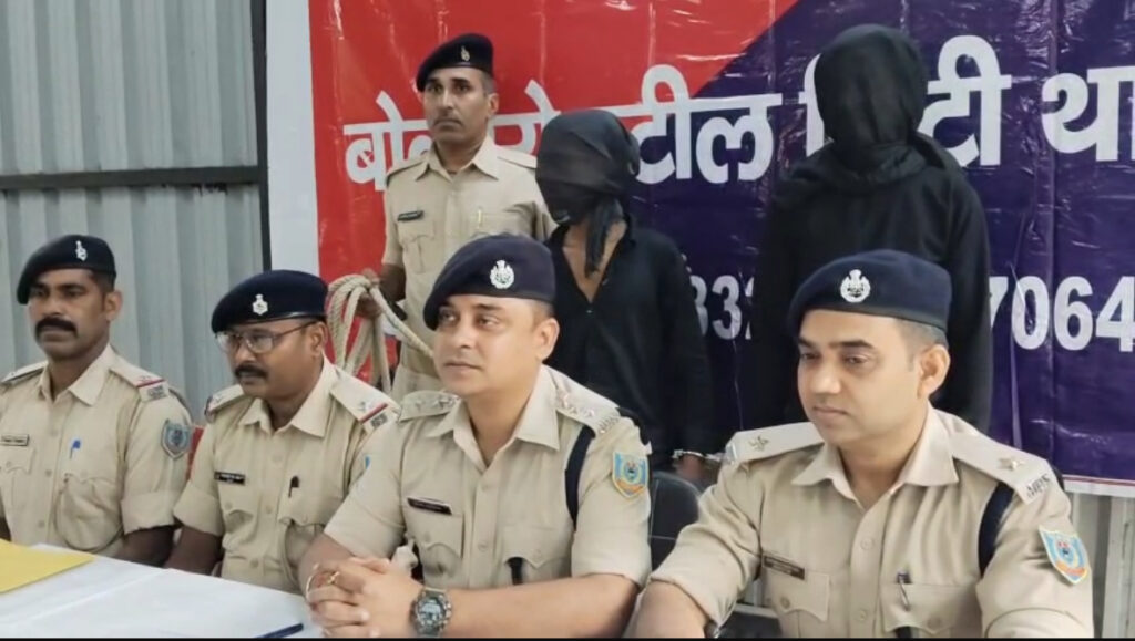 बोकारो के सिटी थाना क्षेत्र के टूटेन गार्डेन में डकैती की योजना बनाने वाले दो अपराधियों को हथियार के साथ पुलिस ने गिरफ्तार किया है । पुलिस के त्वरित कार्रवाई से बोकारो में एक बड़ी आपराधिक घटना को टाला दिया है। यह कार्यवाही बोकारो पुलिस अधीक्षक के निर्देश पर किया गया था । बोकारो पुलिस अधीक्षक को गुप्त सूचना मिली रही थी कि बोकारो के टूटेन गार्डन में बड़ी संख्या में अपराधी हथियार से लैस होकर डकैती की योजना बना रहे हैं। सूचना मिलते ही सिटी डीएसपी के नेतृत्व में छापामारी दल का गठन किया गया। टीम ने घेराबंदी कर मौके से दो अपराधियों हथियार के साथ गिरफ्तार कर लिया वही अन्य अपराधी फरार हो गए।पुलिस ने गिरफ्तार अपराधी के पास से एक देशी कट्टा और तीन जिंदा कारतूस बरामद कीया है। गिरफ्तार आरोपियों की पहचान राजकुमार यादव और कुनाल कुमार के रूप में हुआ है। पुलिस कि माने तो फरार अपराधियों की गिरफ्तारी के लिए छापामारी की जारी है। वही पुलिस की इस मुस्तैदी ने शहर में अपराधियों के मंसूबों पर एक बार फिर से पानी फेरा है ।