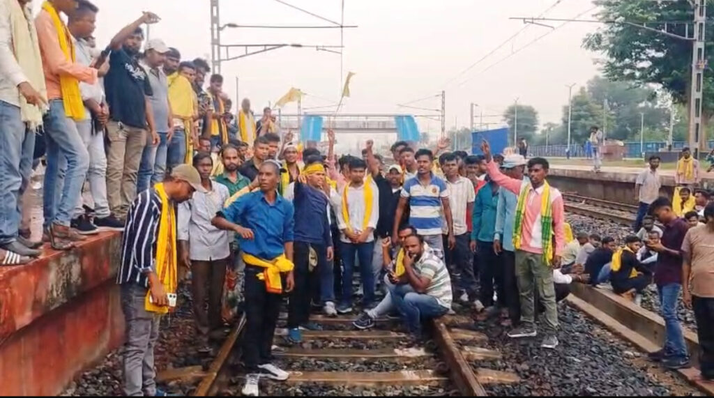 सुबह से ही आंदोलनकारी रेलवे ट्रैक पर बैठ गए, जिससे ट्रेन परिचालन बुरी तरह प्रभावित हुआ।