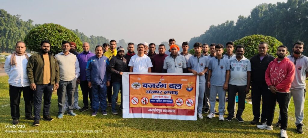 जमशेदजी टाटा मूर्ति के पास से रन फॉर हेल्थ के तहत नशा नहीं करने का संकल्प और शपथ लिया उसके बाद रन फॉर हेल्थ के तहत संगठन के कार्यकर्ताओं ने दौड़ लगाकर लोगों से नशा नहीं करने और नशा छोड़ने का आह्वान किया इस दौरान हिंदू युवा नशा छोड़ो देश की दशा दिशा मोड़ों स्लोगन का उदघोष लगता गया, अपने संगठन कार्य के गतिविधियों को हम जहां रहते हैं वहां बढ़ाने की आवश्यकता है जैसे सत्संग साप्ताहिक मिलन केंद्र बालों उपासना केंद्र संस्कार केंद्र चलने पर जोर देना है बजरंग दल झारखंड के तत्वाधान में प्रदेश के सभी प्रखंडों में 9 नवंबर से 16 नवंबर 2025 तक संस्कार सप्ताह के तहत रन फॉर हेल्थ में नशा मुक्ति अभियान एवं कबड्डी प्रतियोगिता संस्कार सप्ताह का कार्यक्रम चल रहा है उन्होंने कहा कि हिंदू युवा विभिन्न प्रकार के व्यसनों मैं पकड़ कर अपना शरीर अपना घर अपना परिवार अपना देश धर्म संस्कृति को बर्बाद करने में तुला है वही मुस्लिम युवा जिम में जाकर सिक्स पैक बनाकर लव जिहाद कर रहा है और हिंदू कन्याओं से हमारा ही शत्रु पैदा करने में लगा है एक मुस्लिम युवा चार पांच शादी कर उन्हें अंधाधुन बच्चे पैदा करने में लगा है वही हिंदू युवा व्यसनो मैं पकड़ कर बच्चा पैदा करने का क्षमता भी खोता जा रहा है यहां चिंता का विषय है इसे हमें ही ठीक करना पड़ेगा!