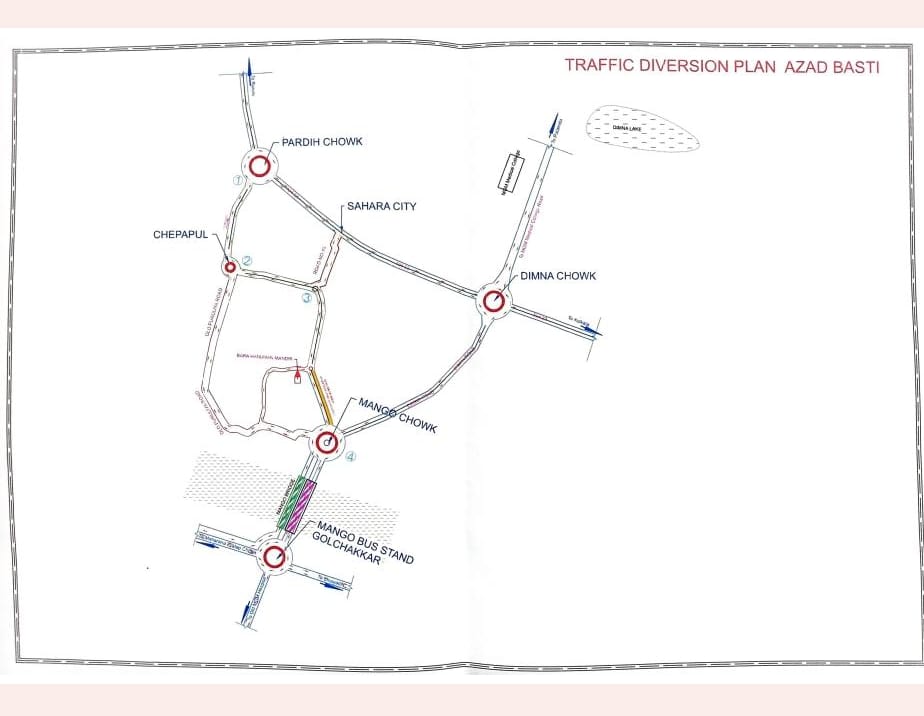 प्रात 6 बजे से सुबह 8 बजे तक पारडीह चौक से मानगो ब्रीज की ओर आने वाली छोटी वाहन सहारा सिटी रोड नंबर 15 – पारडीह मानगो रोड होते हुएमानगो ब्रिज तक जा सकते है.