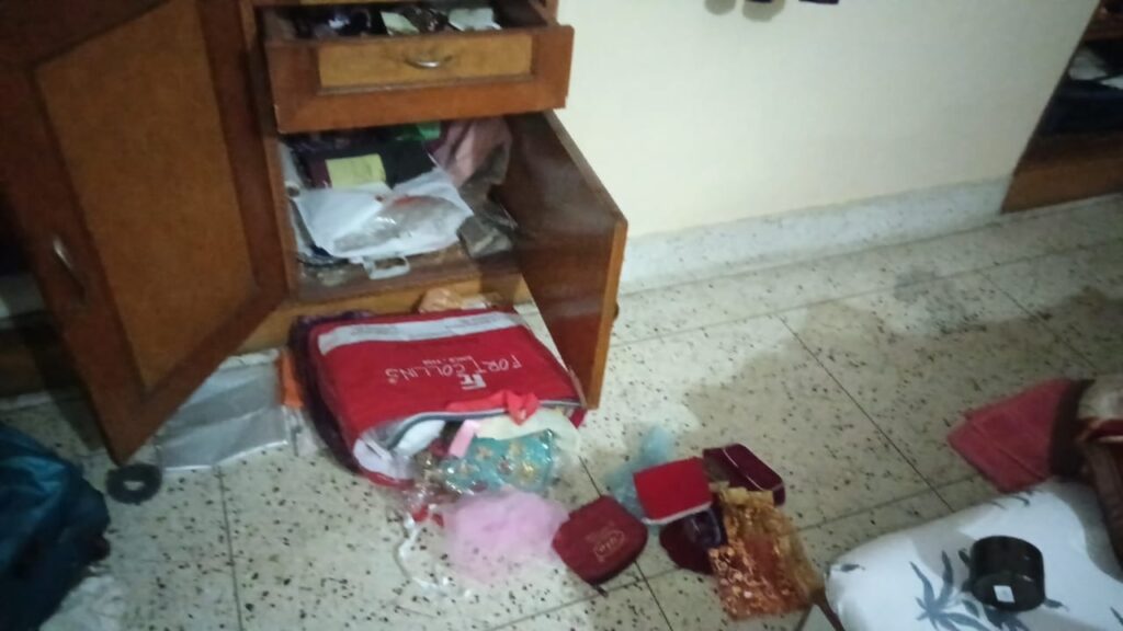 बैकुंठ अपार्टमेंट के तीसरे तल्ले निवासी प्रवीण गोयल अपने परिवार के सदस्यों के साथ सुबह फ्लैट से अन्य फ्लैट में चले जाते है जहां रात के वक्त सिर्फ सोने के लिए तीसरे तल्ले वाले फ्लैट में आते है,शुक्रवार सुबह भी पीड़ित परिवार के सदस्य हर रोज़ की तरह अपने एक तल्ले वाले फ्लैट में चले गए जब रात के वक्त तीसरे तल्ले वाले फ्लैट में सोने आये तो देखा कि घर के बाहर ताला गायब है बाहर दरवाजे पर चिट्किनी लगी है अंदर आकर देखने पर उन्होंने पाया कि घर के अंदर ताला कटा पड़ा है और कमरे के अंदर कबाड से लगभग 18 से 20 लाख के जेवरात गायब है सारे सामान बिखरे पड़े है देर न करते हुए इस संबंध में उन्होंने जुगसलाई पुलिस को सूचना दी जहाँ पुलिस घटनास्थल पर पहुंच कर जांच पड़ताल में जुट गई है