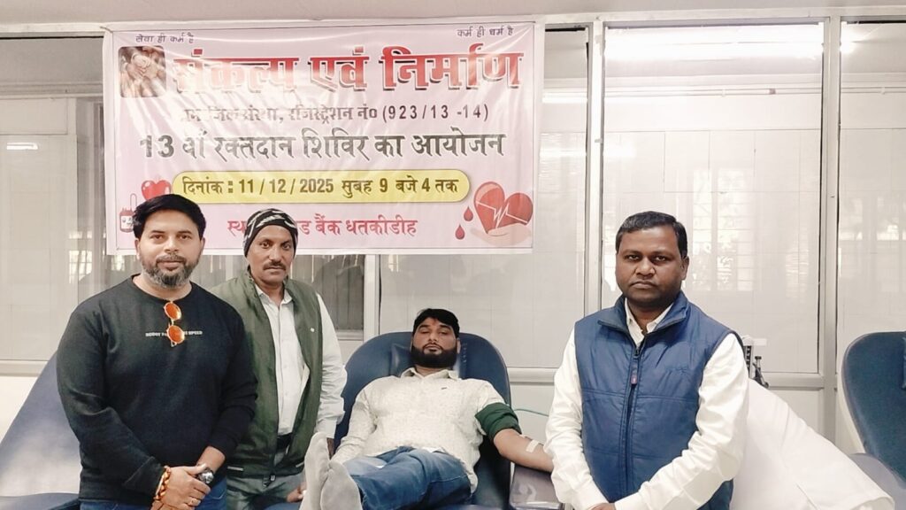 जमशेदपुर की जानी-मानी सामाजिक संस्था ‘संकल्प एवं निर्माण सामाजिक संस्था’ के द्वारा आज भव्य स्तर पर 13वां रक्तदान शिविर का आयोजन किया गया। समाज सेवा और स्वास्थ्य सुरक्षा के क्षेत्र में सक्रिय यह संस्था लगातार लोगों को रक्तदान के लिए जागरूक करती आई है।