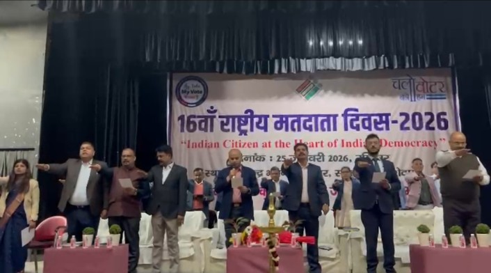 जमशेदपुर में 16वें राष्ट्रीय मतदाता दिवस के अवसर पर जिला प्रशासन की ओर से जिला स्तरीय कार्यक्रम का आयोजन किया गया। यह कार्यक्रम शहर के रविन्द्र भवन सभागार में आयोजित हुआ, जहां जिले के उपायुक्त, वरीय पुलिस अधीक्षक सहित तमाम वरीय अधिकारी, सभी बीएलओ और पहली बार मतदान कर चुके नए वोटर्स मौजूद रहे। कार्यक्रम के दौरान लोकतंत्र को मजबूत बनाने में योगदान देने वाले कर्मियों को सम्मानित किया गया। जिले के उपायुक्त कर्ण सत्यार्थी ने विगत चुनावों में उत्कृष्ट कार्य करने वाले कर्मचारियों को सम्मान पत्र देकर सम्मानित किया। इस मौके पर उपस्थित अधिकारियों, कर्मचारियों और मतदाताओं को निष्पक्ष और जिम्मेदार मतदान प्रक्रिया को लेकर शपथ भी दिलाई गई। उपायुक्त कर्ण सत्यार्थी ने कहा कि सभी को अपने दायित्व को समझते हुए आने वाले चुनावों में निष्पक्ष और ईमानदारी से अपनी जिम्मेदारी निभानी होगी। जिले के उपायुक्त कर्ण सत्यार्थी ने कहा की आज हम सभी यह शपथ लेते हैं कि आने वाले चुनावों में पूरी निष्पक्षता और जिम्मेदारी के साथ अपने कर्तव्यों का पालन करेंगे।