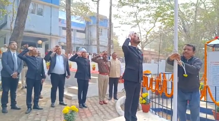 जमशेदपुर 77वें गणतंत्र दिवस के पावन अवसर पर जिले में देशभक्ति का माहौल देखने को मिला। धालभूम अनुमंडल पदाधिकारी ने कार्यालय परिसर में राष्ट्रीय ध्वज फहराकर कार्यक्रम की शुरुआत की। इस मौके पर राष्ट्रगान के साथ तिरंगे को सलामी दी गई और देश की एकता व अखंडता को बनाए रखने का संकल्प लिया गया।