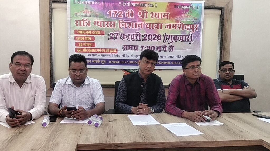जमशेदपुर: फाल्गुन माह के पावन अवसर पर 27 फरवरी को शहर में विशाल एवं भव्य श्री श्याम निशान यात्रा का आयोजन किया जाएगा। इस धार्मिक यात्रा में लगभग 5 हजार से अधिक श्रद्धालुओं के शामिल होने की संभावना है।
