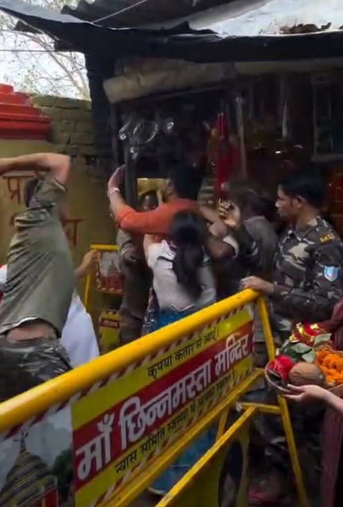 झारखण्ड के एक मात्र सिद्धिपिट माँ छीनमास्तिका मंदिर में पूजा करने आए श्रद्धालु पर पुलिस के द्वारा लात घुसे और डांटे से की गई मारपीट रजरप्पा मंदिर के निकाशी द्वार में लगे पुलिस कर्मियों के द्वारा जमकर श्रद्धालु पर चलाई गई डंडे श्रद्धालु के परिवार वाले बीच बचाव में लगे रहे, पर पुलिस के द्वारा लगातार श्रद्धालू पे डंटे घुसे चलते दिखे पुलिसकर्मी पर नहीं मानी रजरप्पा मंदिर के सुरक्षा में लगे सुरक्षा कर्मी. रजरप्पा पुलिस के कार्य प्रणाली पर उठ रहे सवाल..श्रद्धालु भीड़ के वजह से निकासी द्वार से घुसना चाह रहे थे माता के मंदिर..पुलिस के द्वारा डंडे चलाने का वीडियो खूब हो रहा है वायरल..रजरप्पा मंदिर के न्याय समिति ने कहा कि पुलिस से हुई है गलती..